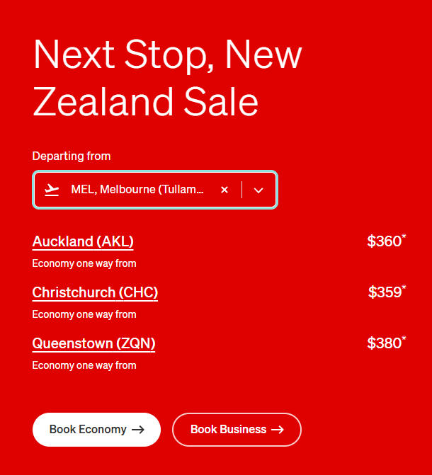 Qantas澳洲航空公司飞新西兰机票促销!