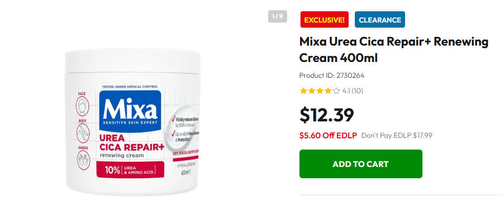 Mixa 尿素积雪草修复新生霜特价!现价$12.39,省$5.60!@ Chemist Warehouse