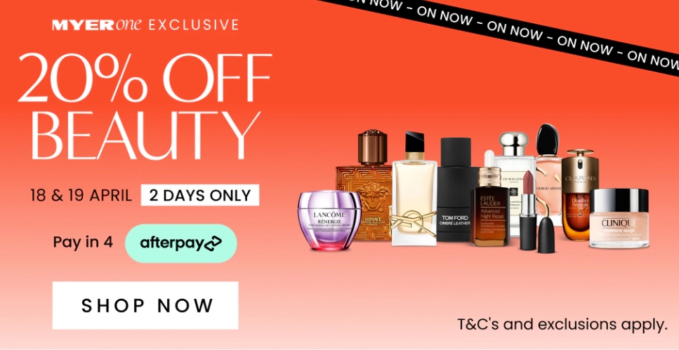 Myer会员专享:美妆20%折扣!