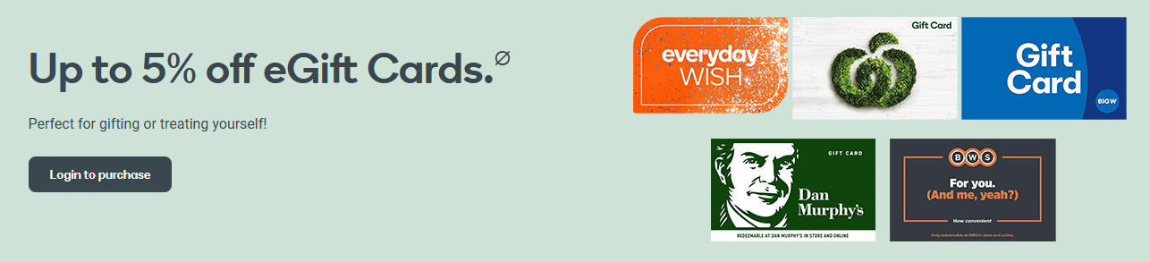作为 Woolworths 保险客户,可以在保险门户内,以最高 95 折的价格购买 Woolworths 系列电子礼品卡。