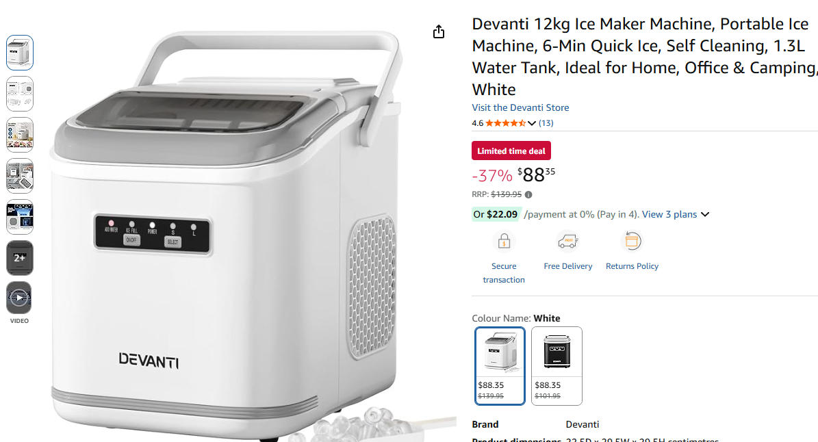 Devanti 12kg Ice Maker Machine, Portable Ice Machine 便携式冰机
